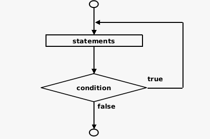 nah, kalau do-while statements dulu yang dijalankan setelah itu di cek apakah kondisinya masih true, jika masih true maka dijalankan terus statements nya. Jika sudah false maka program akan berhenti.
